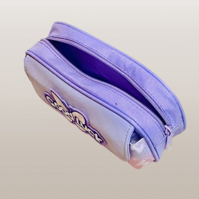 Bunny-Themed Pencil Case with Glittery Base and Dual Zipper Compartment