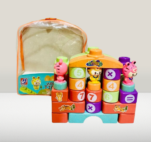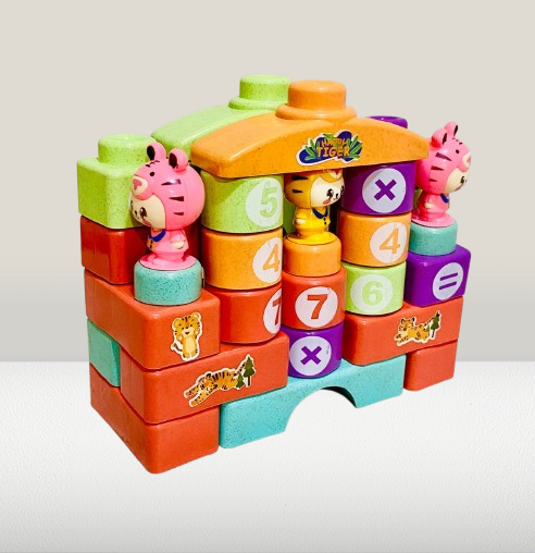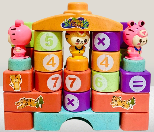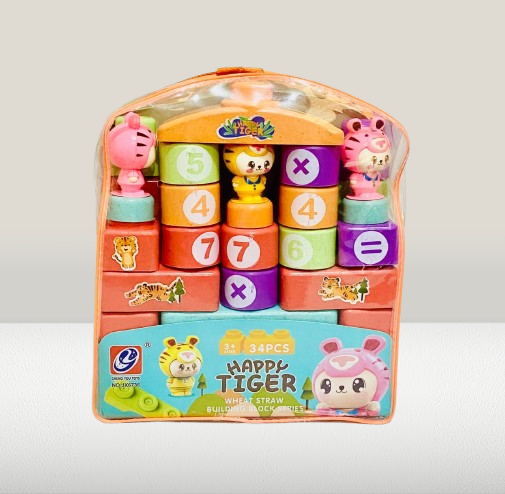 Let your child explore the world of numbers and imagination with the Happy Tiger Wheat Straw Building Block Series. This adorable 34-piece set is designed for children featuring vibrant blocks imprinted with numbers, math symbols, and playful animal characters.