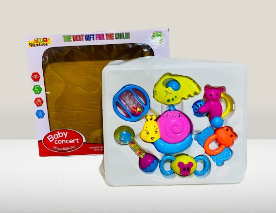 Delight your baby with the Toy Venture Baby Concert Rattle Set, a charming and educational toy collection designed to engage infants. Each rattle features fun animal shapes and bright colors to grab your child’s attention and keep them entertained for hours.