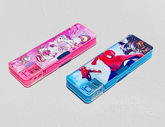 Bring the action of the Marvel universe and unicorns to your child’s school desk with this bold unicorns and Spiderman-themed pencil box. Featuring vibrant artwork of Spiderman and unicorns swinging into action, this durable hard plastic pencil case keeps school supplies safe and organized. It includes dual compartments, a built-in sharpener, and easy push-button openings, making it both fun and functional. Ideal for kids who love superheroes and want their stationery to stand out.Make school time more enchanting with this charming box. Designed in a delightful pink and blue colors, it showcases playful unicorns spiderman donuts, and ice creams, creating a magical vibe kids adore. Made of strong plastic, it offers dual compartments for organized storage and includes quick-access pop-out buttons and a built-in sharpener. A perfect stationery box for little dreamers who enjoy fantasy and color.