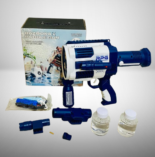 Bazooka Bubble Gun is a fun, high-output bubble blaster designed to entertain children and adults alike. Equipped with 3 bubble outlets, this electric bubble gun creates a rich stream of bubbles, perfect for parties, backyard fun, or beach outings.