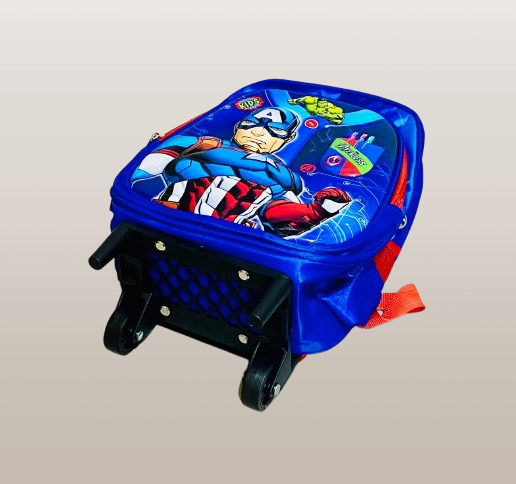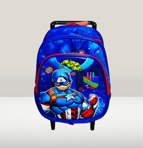 Let your child carry the power of superheroes with this Captain America-themed kids trolley school bag! Designed for Marvel fans, this vibrant rolling backpack features Captain America in a bold pose, along with Hulk and Avengers-themed graphics. The bag is made from durable, lightweight material with a hard base and easy-glide wheels, making it ideal for both school and travel.