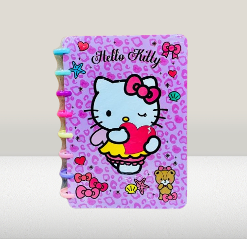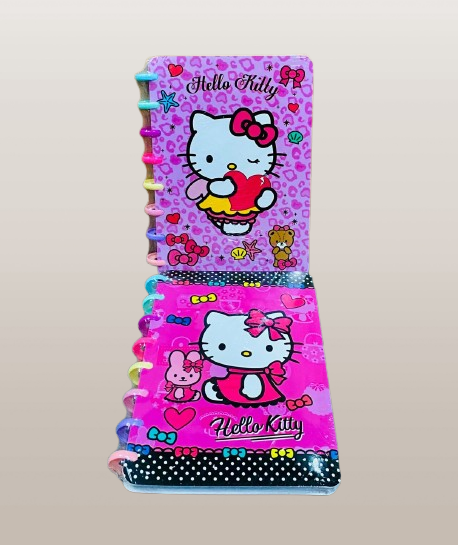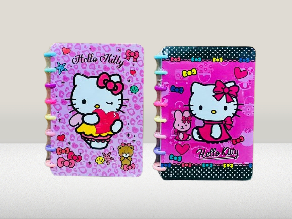 Brighten up your writing experience with these adorable Hello Kitty disc-bound notebooks! Featuring two different playful Hello Kitty designs in shades of pink, these notebooks are a must-have for fans of kawaii and Sanrio characters. The disc-binding system not only adds a fun rainbow-colored touch but also makes it easy to remove, rearrange, or add pages — making these notebooks both cute and customizable.