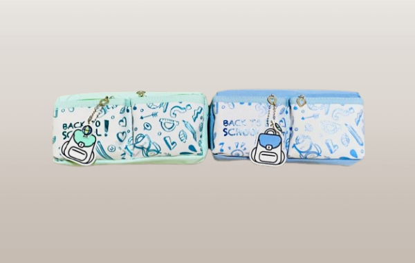 Get ready for the school year with these adorable “Back to School” themed pencil pouches. Each pouch features a playful, doodle-style design with school-related icons and fun illustrations. Made from durable material, the pouches come with two zippered compartments — perfect for storing pencils, pens, erasers, rulers, and other small stationery items.