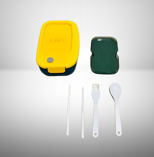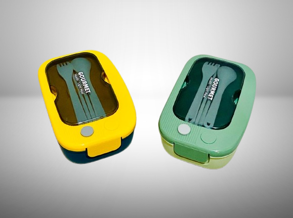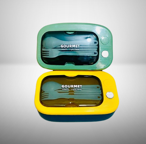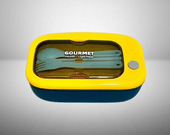 Enjoy your meals anywhere with the sleek and functional GOURMET Simple Lunch Box. Featuring a bright yellow outer shell and a transparent lid, this lunch box comes with integrated fork and spoon neatly stored under the lid. The durable, food-grade plastic body ensures safe storage, while its leak-resistant design keeps your food fresh and spill-free. With the printed phrase “GOURMET – Health • Light Meal”, it’s perfect for those who prefer light, organized meals at work, school, travel, or picnics. Compact, stylish, and easy to carry, this lunch box promotes both convenience and healthy eating.