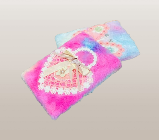 Bring a touch of elegance and sweetness to your daily notes with these beautifully designed plush notebooks. Covered in ultra-soft, pastel-toned furry fabric, each notebook features a charming 3D embellishment — one with a heart-shaped handbag design accented with lace and ribbon, and the other with a delicately crafted butterfly adorned with embroidered flowers and a bow.