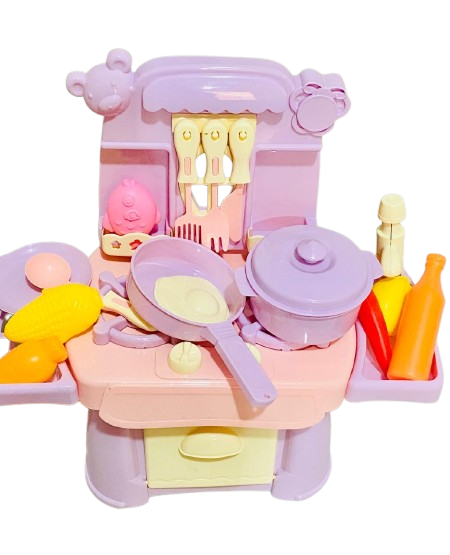 The playset includes light and sound features to mimic real kitchen experiences, helping children develop their coordination, creativity, and daily life skills. Parents can use this toy to guide children in building useful habits and understanding simple household tasks in a playful environment.