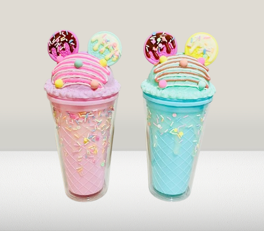 Make every sip a sweet treat with these ice cream-themed tumblers, designed in fun pastel colors and topped with faux ice cream lids and playful cookie “ears.” Each cup features a waffle cone-style textured body, sprinkle decorations, and a matching reusable straw. The double-wall construction keeps drinks cool and prevents condensation. These BPA-free cups are perfect for cold beverages like smoothies, milkshakes, juices, and more — a great gift for kids, party favors, or anyone who loves cute, dessert-inspired drinkware.