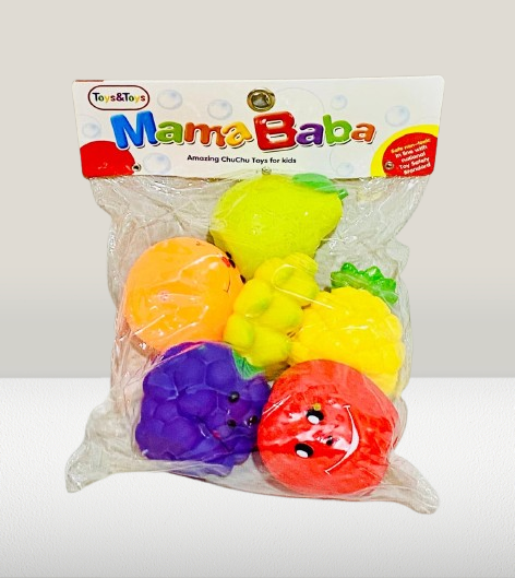 Add some splashy fun to bath time with the Mama Baba Fruit ChuChu 6‑piece set—bright and adorable fruit-themed toys ideal for toddlers. Crafted from soft, non-toxic, BPA‑free material with smooth edges, these toys are safe and comfortable for curious little hands. Similar fruit bath toy sets are praised for being colorful, squeezable, and great for imaginative water play