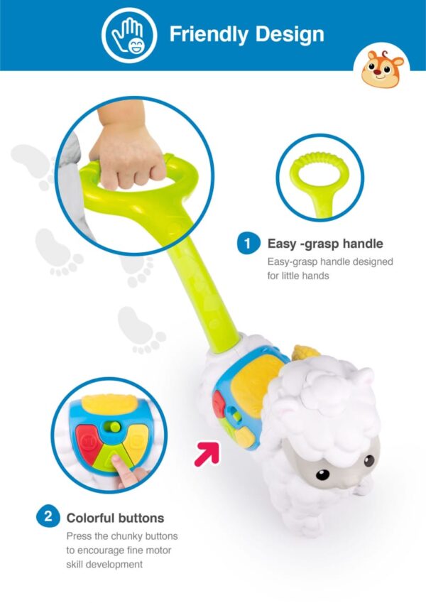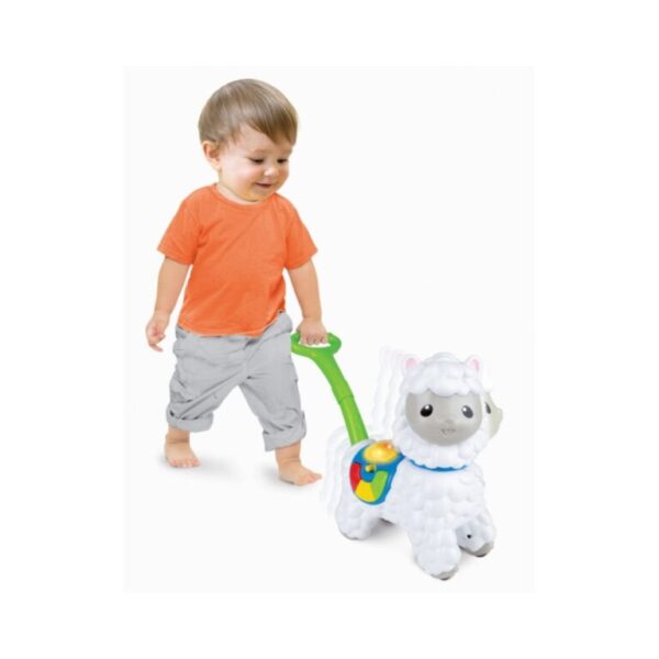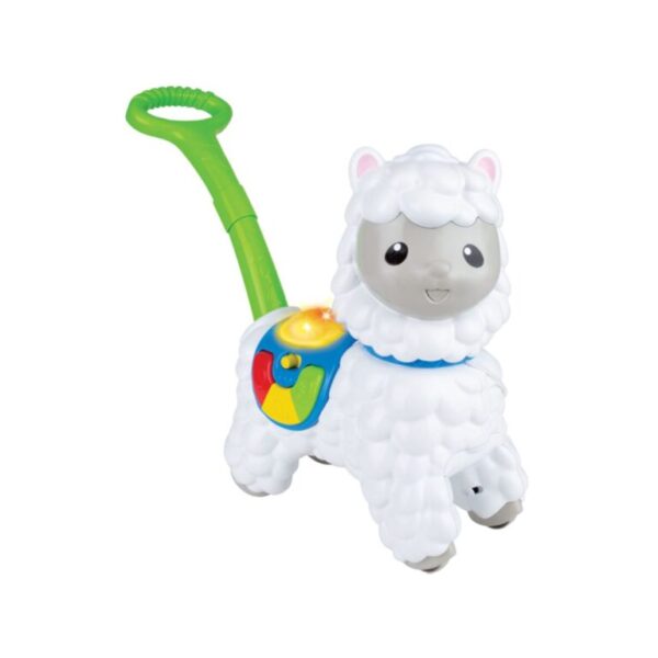 The Win fun Push-Along Little Alpaca is a delightful, toddler-friendly pull‑along toy designed for little ones aged 12 months and above. With its easy‑grasp handle, children can push the alpaca and watch its head bob up and down as it moves, encouraging early walking and coordination skills It engages toddlers with a mix of fun features—pressing its head “feeds” it a corn treat that triggers playful phrases, sounds, and cheerful melodies, accompanied by flashing lights On its back, colorful buttons enable learning of counting (1‑2‑3), shapes, and simple phrases, while also offering a storage spot on the saddle for the corn treat toy . Powered by two AA batteries (included), this interactive companion offers a rich blend of sensory, language, and motor development activities, making it a wholesome choice for curious toddlers ready to explore!