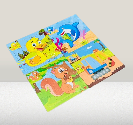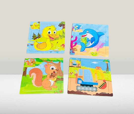 Delight your little ones with this colorful Set of 4 Wooden Cartoon Jigsaw Puzzles, each uniquely themed to engage, entertain, and educate. The puzzles are thoughtfully illustrated with cute and familiar characters — perfect for curious toddlers who are beginning to explore shapes and problem-solving.