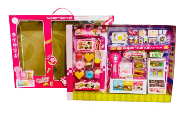 Introduce your child to the fun of running a store with the Supermarket Play House – Cashier Beautiful Shopping Series. This colorful and interactive playset is packed with realistic supermarket accessories, including a cash register, barcode scanner, plastic food items, sweets, and mini groceries, offering a complete pretend shopping experience.