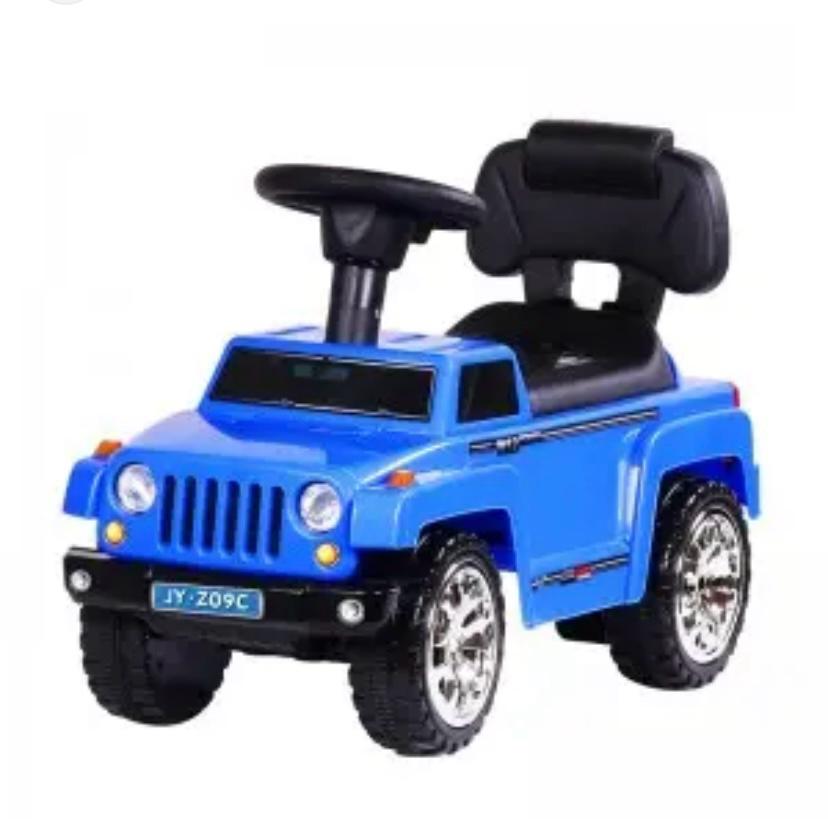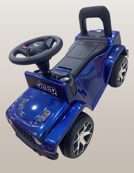 This blue ride-on jeep is a fun and rugged toy vehicle designed to capture the adventurous spirit of off-road driving, perfect for toddlers It features a sturdy body with a sleek jeep-like design, functional steering, and a comfortable seat with a tall backrest for safety and support. The chrome-look wheels and detailed front grille enhance its realistic appearance, making it a favorite among kids. Constructed with durable plastic, this ride-on toy supports safe play indoors and outdoors while helping develop balance, coordination,