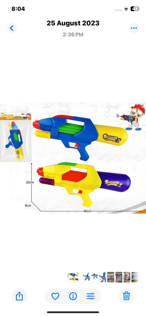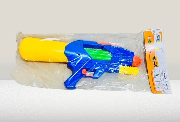 Make playtime more exciting with this vibrant and fun water gun, designed especially for kids. The water gun features a colorful body with a blue handle, green and red detailing, and a large yellow water tank. Crafted from durable plastic, it’s lightweight and easy for children to carry and use. Ideal for outdoor activities, water fights, poolside games, or festive celebrations like Holi, this toy provides endless entertainment during hot summer days. Safe for children it’s a perfect addition to any child’s toy collection.