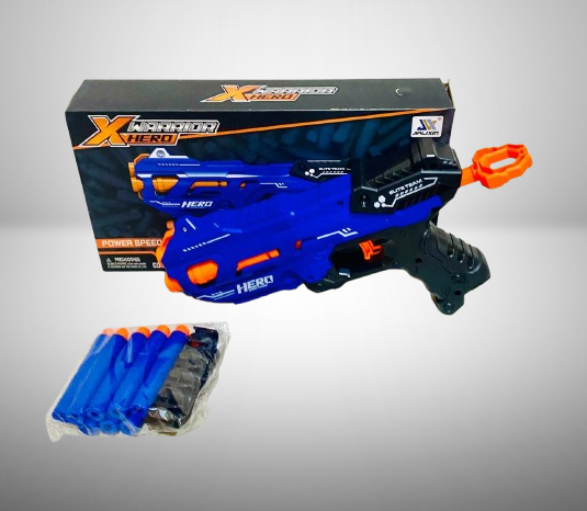 Unleash action-packed fun with the X Warrior Hero Power Speed Dart Gun – a sleek, powerful blaster toy built for speed and precision! Designed for children, this blaster gun features a futuristic design and comes with 8 soft foam darts for safe indoor and outdoor battles.